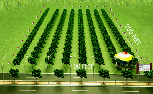 Ideally Located on a 40 feet wide cross roads and 60 feet wide Main Roads, the plot will have all the comfortable amenities for a good living after the harvest with all legalities cleared from agriculture to residential purpose. During cultivation the plants are grown at a distance of 12' row to row and 10' plant to plant. In all the plots one comfortable resting place is provided for your visiting comforts with family.